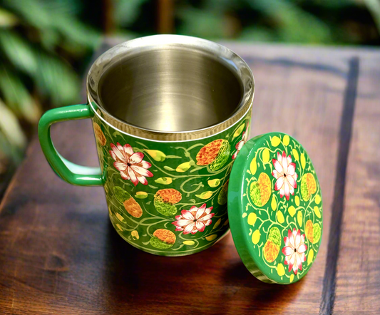 Emerald Lotus - Hand Painted Double Walled Insulated Mugs